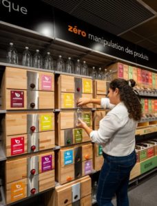 Dans son magasin test rue Réaumur, dans le 2ème arrondissement de Paris, l’enseigne Franprix expérimente des nouveautés avant d’en faire le bilan et de les déployer : un bar à salade avec des contenants réutilisables, un espace cuisine ou encore un rayon vrac, notamment avec l’entreprise Uzaje spécialisée dans les solutions industrielles pour le réemploi des emballages.