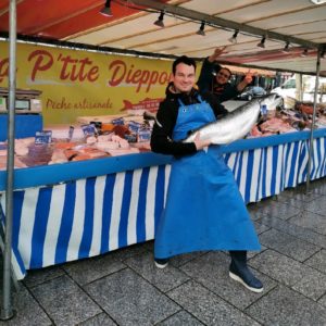 La poissonnerie La P’tite Dieppoise s’est associée à d’autres commerçants pour négocier des tarifs de gros pour ses sacs plastiques biodégradables et ses «parchemins» en papier.