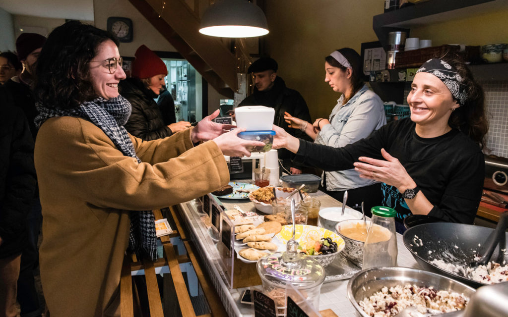 La boulangerie Emma Duvere, dans le 11ème arrondissement et membre d’Ecotable, réduit de 20cts le prix de sa soupe chaque fois que le client vient avec son contenant. Une petite action pour le porte-monnaie mais un grand pas pour la panète !